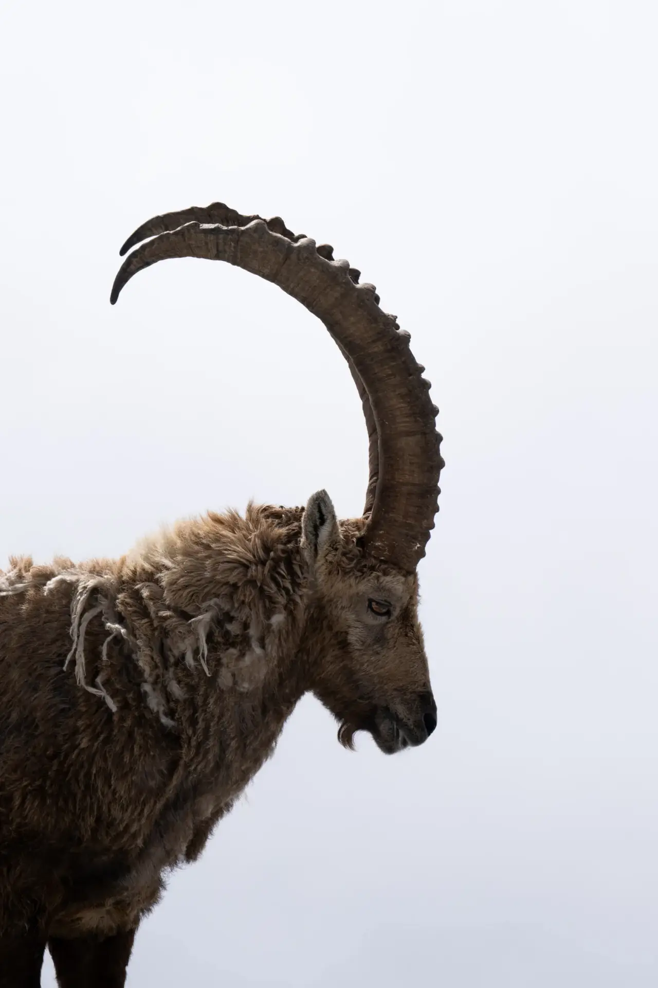 Le roi des montagnes. Dans la blancheur du ciel, il se tient, immobile et serein. Son profil se découpe dans la lumière, empreint de force et de calme. Chaque courbe, chaque ombre raconte la rudesse et la beauté des cimes. Ici, la montagne respire à travers lui fière, libre, éternelle.