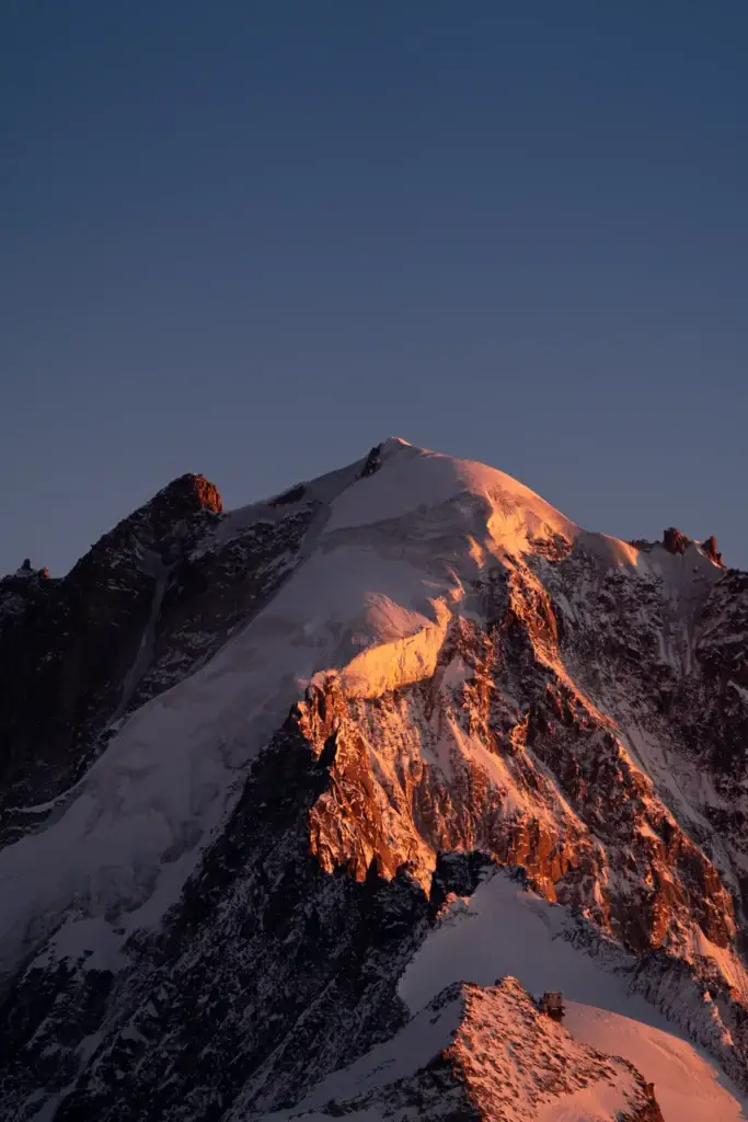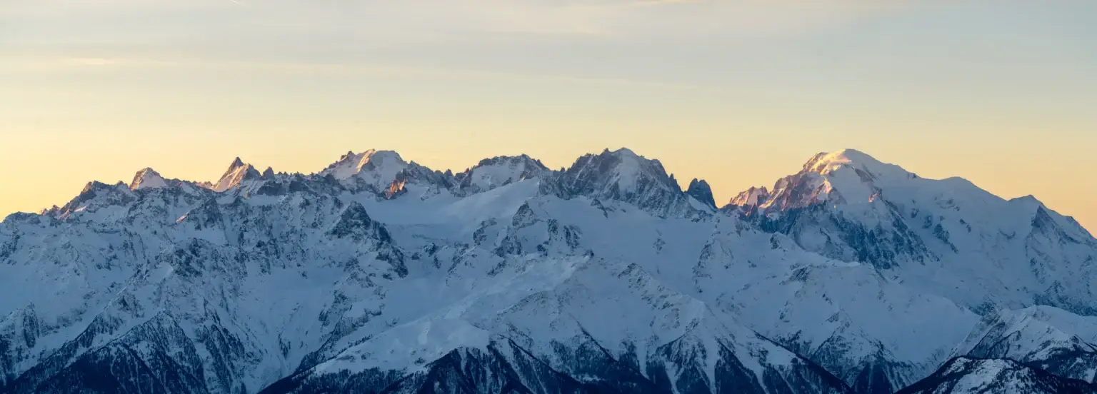 Massif du Mont-Blanc, Toit de l’Europe et royaume des cimes, le massif du Mont-Blanc mêle glace et granit dans une danse éternelle. Autour du géant de 4 808 mètres, l’Aiguille du Midi, la Verte, les Drus, les Grandes Jorasses, le Grand Capucin et le Triolet dressent leurs silhouettes fières, témoins d’exploits et de rêves d’altitude. Ces noms résonnent comme ceux de montagnes qui ont fait rêver des générations d’alpinistes et en feront encore rêver beaucoup d’autres. Plus loin, les Dômes de Miage ou l’Aiguille de Bionnassay murmurent la beauté d’une nature intacte. Ici, chaque lever de soleil effleure la pierre comme un pinceau sur la toile du monde. L’alpiniste s’y élève, le photographe y cueille l’instant suspendu.